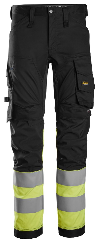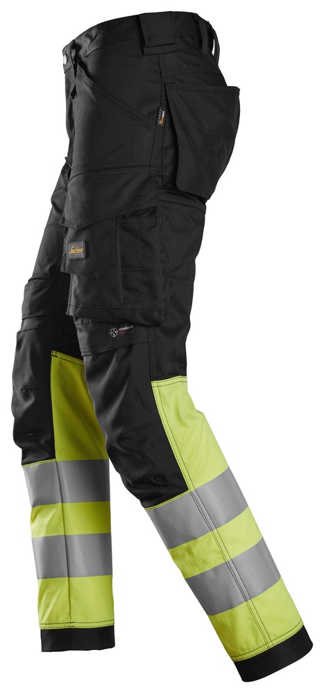 6334 Pantalones largos de trabajo elásticos de alta visibilidad clase 1 negro-amarillo