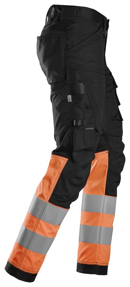 6334 Pantalones largos de trabajo elásticos de alta visibilidad clase 1 negro-naranja