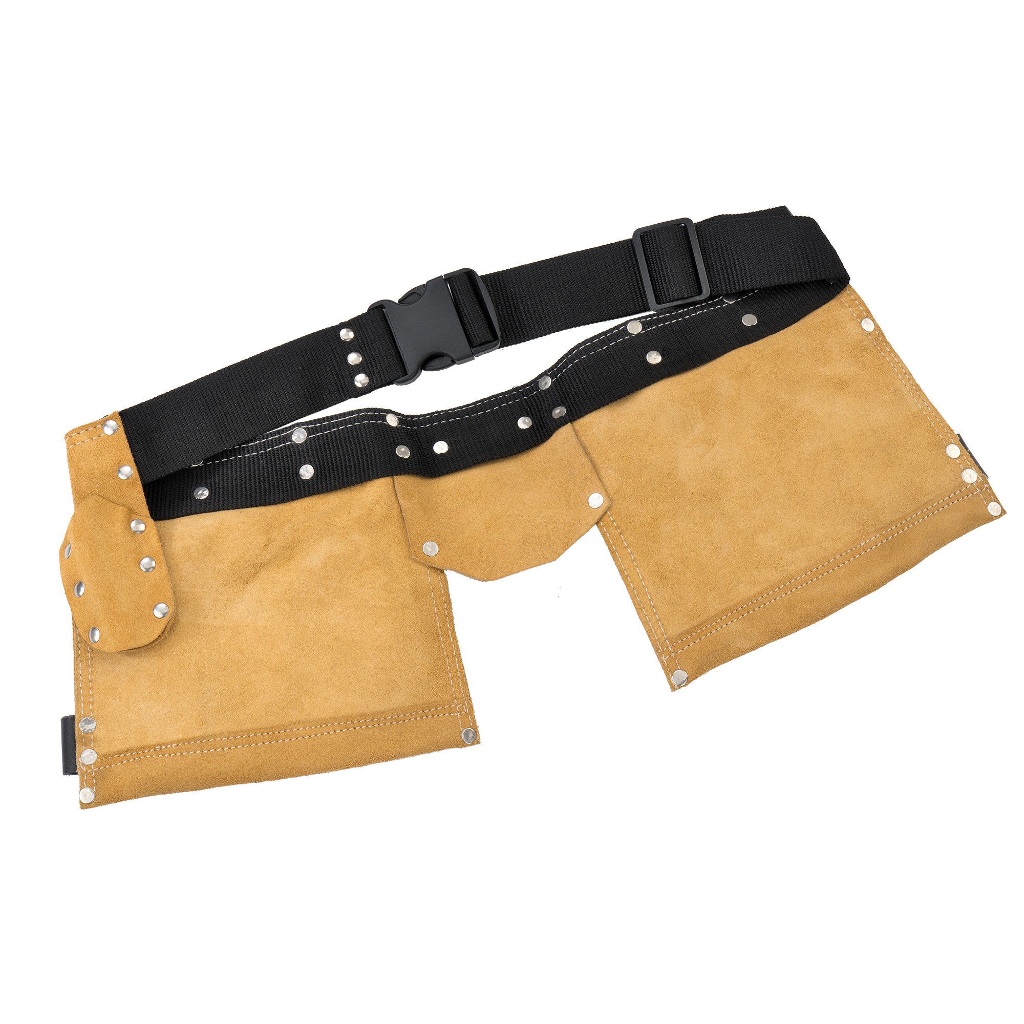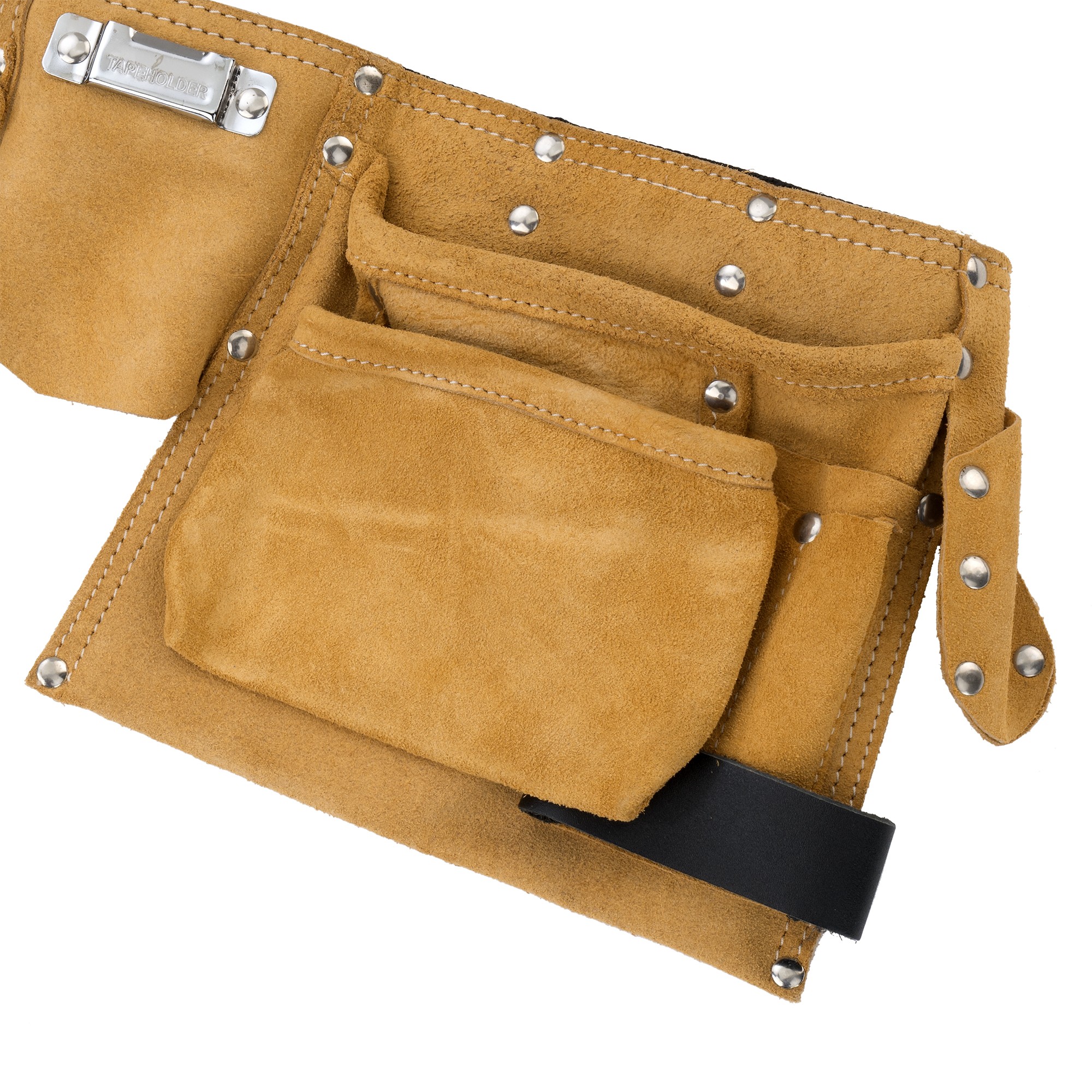 Cinturón porta herramientas o canana profesional de piel de alta calidad, especialmente diseñado para el encofrador. Dispone de 4 bolsillos y alojamiento para martillo encofrador. Gran duración y resistencia. Cintura ajustable. Para trabajadores de la construcción y especialmente encofradores.